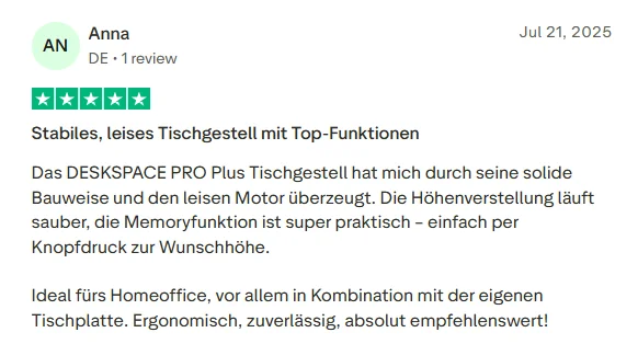 - Deskspace Pro Plus wirkt ruhiger und stabiler als der FlexiSpot E7 Pro